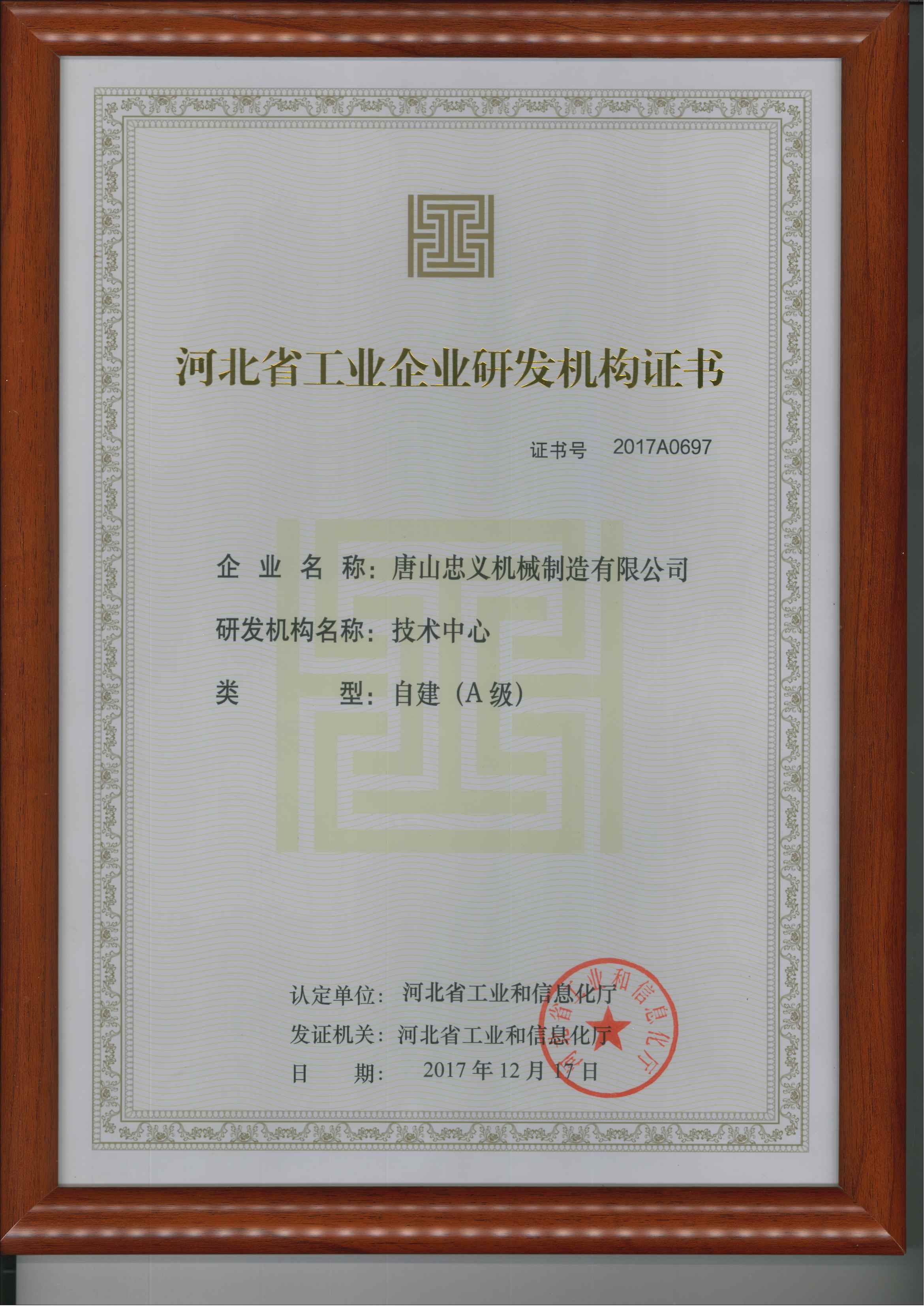 河北省工業(yè)企業(yè)研發(fā)機(jī)構(gòu)證書(shū)彩色原版 發(fā)布時(shí)間:2025-08-18 點(diǎn)擊: 104 上一條: 河北省專(zhuān)精特新中小企業(yè) 下一條: 河北省科技型中小企業(yè)證書(shū)(新)